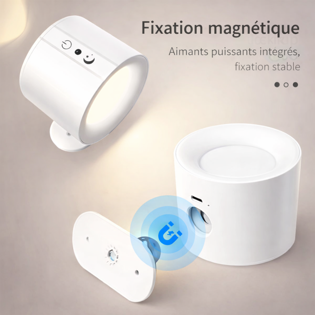 Fixation magnétique ultra-simple, sans outils ni travaux. Installez, retirez ou repositionnez la lampe quand vous voulez.