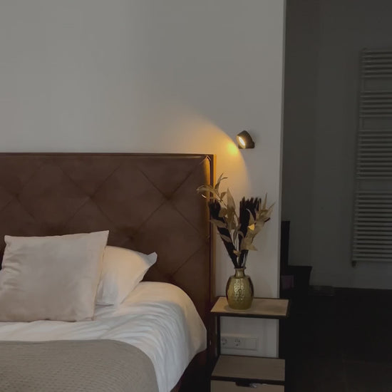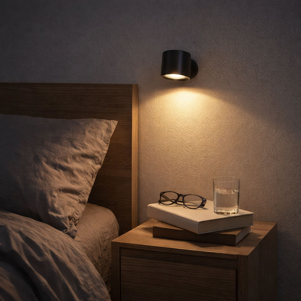On a posé deux appliques dans la chambre, ça fait tout de suite plus chic. Lumière douce et orientable, parfait le soir.